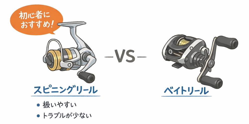 初心者のうちは、扱いやすいスピニングモデルを選ぶのがおすすめです。ベイトタックルにも良さはありますが、最初はトラブルが少なく、飛距離も出しやすいスピニングのほうが始めやすいと感じます。